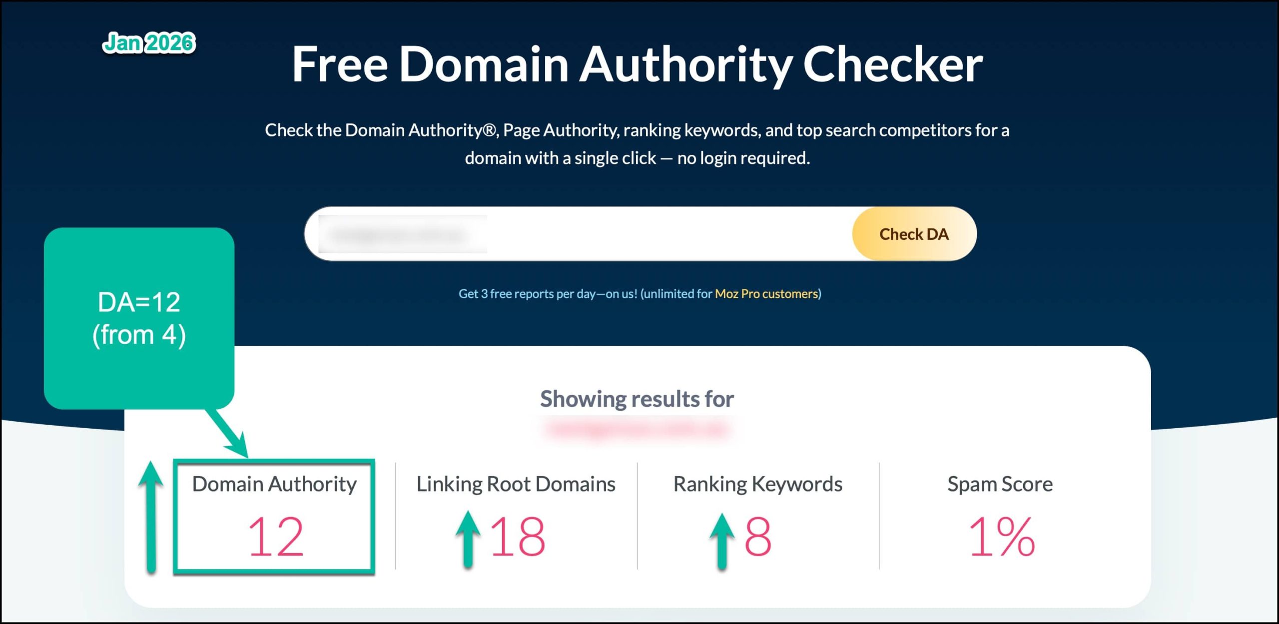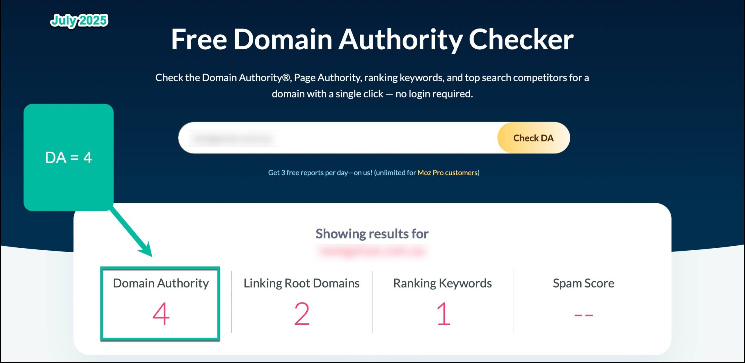 If your site shows a low (or even zero) DA, it simply means there’s an opportunity to improve visibility — not that anything is “wrong”.