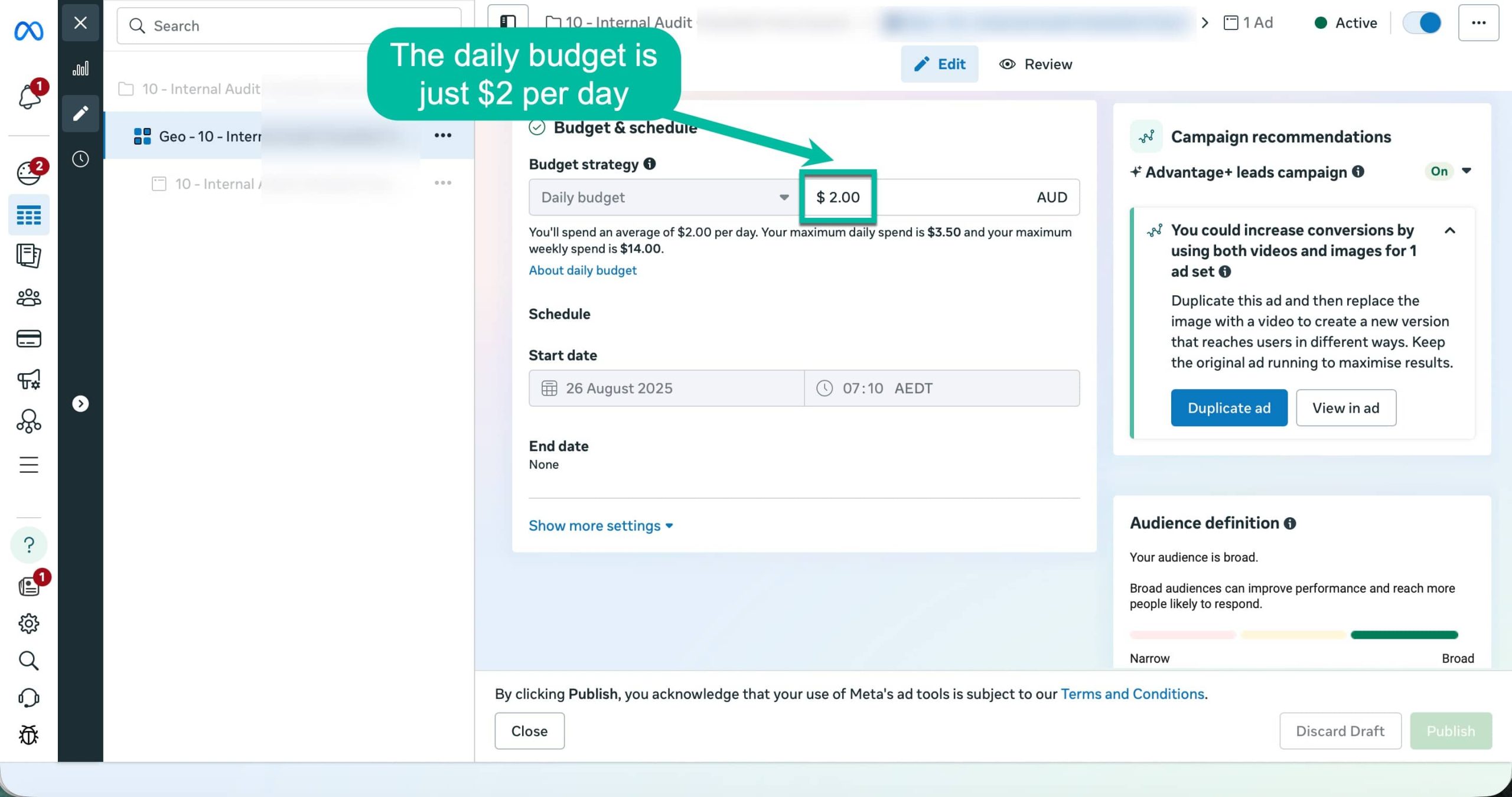 I wanted to share a real example from recent campaigns that demonstrates what can be achieved even with a very small daily ad budget.